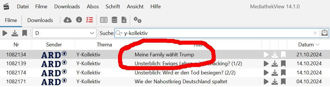 Wenn etwas in Mediathekviewweb angezeigt wird, und bei Dir nicht, stimmt irgendwas bei Dir nicht.