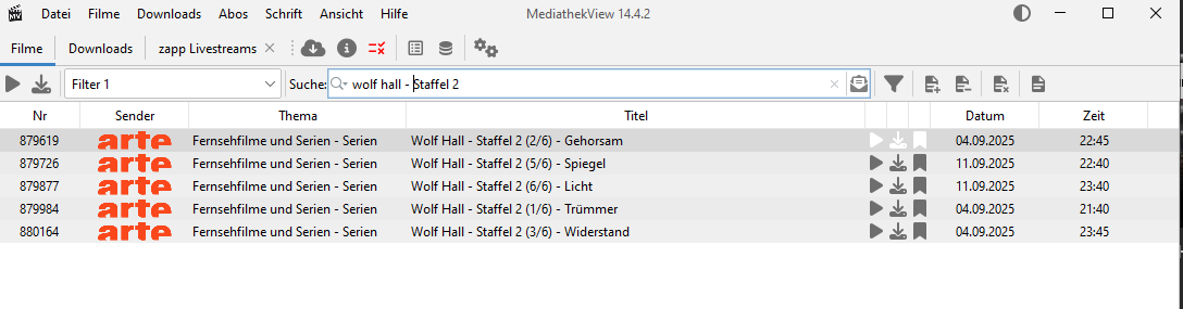 Wenn die Crawler was finden, ist es in MV - egal ob ARTE oder BR.
