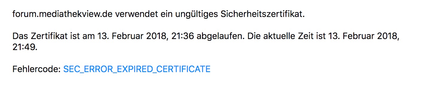 Leider kommt man ohne Tricks seit heute Abend nicht mehr rein (Fehlermeldung: Zertifikat abgelaufen)…