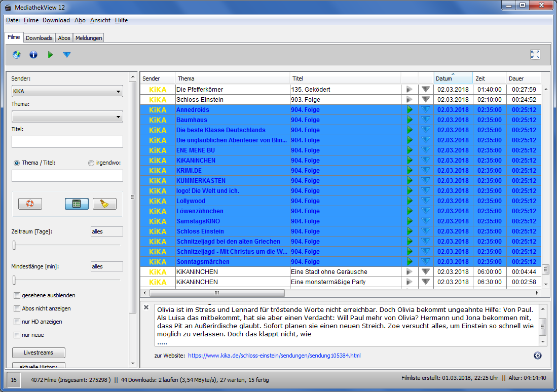 Beim Kika gibts immer wieder einzelne Sendungen mehrfach zusätzlich mit falschen Thema. Aktuell trifft es die Folgen von Schloss Einstein.