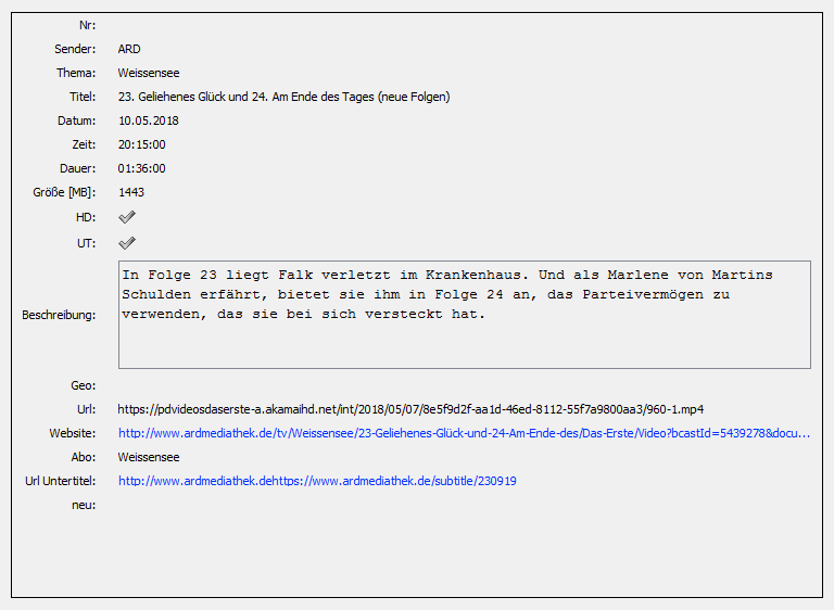 Anscheinend werden bei Sendungen der ARD die Untertitel-URLs nicht korrekt erfasst.