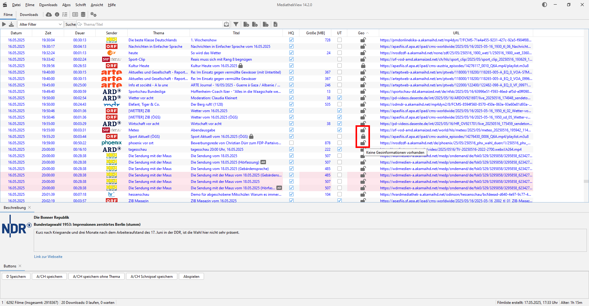• zuerst die Einträge mit einem offenen Schloss wegen “Keine Geoinformationen vorhanden”,