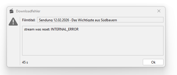Diese Abbrüche sind unregelmäßig, oft funktioniert der Download nach mehrmaligen Versuchen.Neueste Version der Mediathekview, Betriebssystem Windows 11