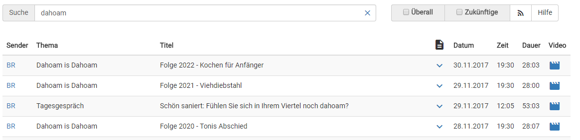 - suche ausgeführt, alle folgen im br auch zukünftige.